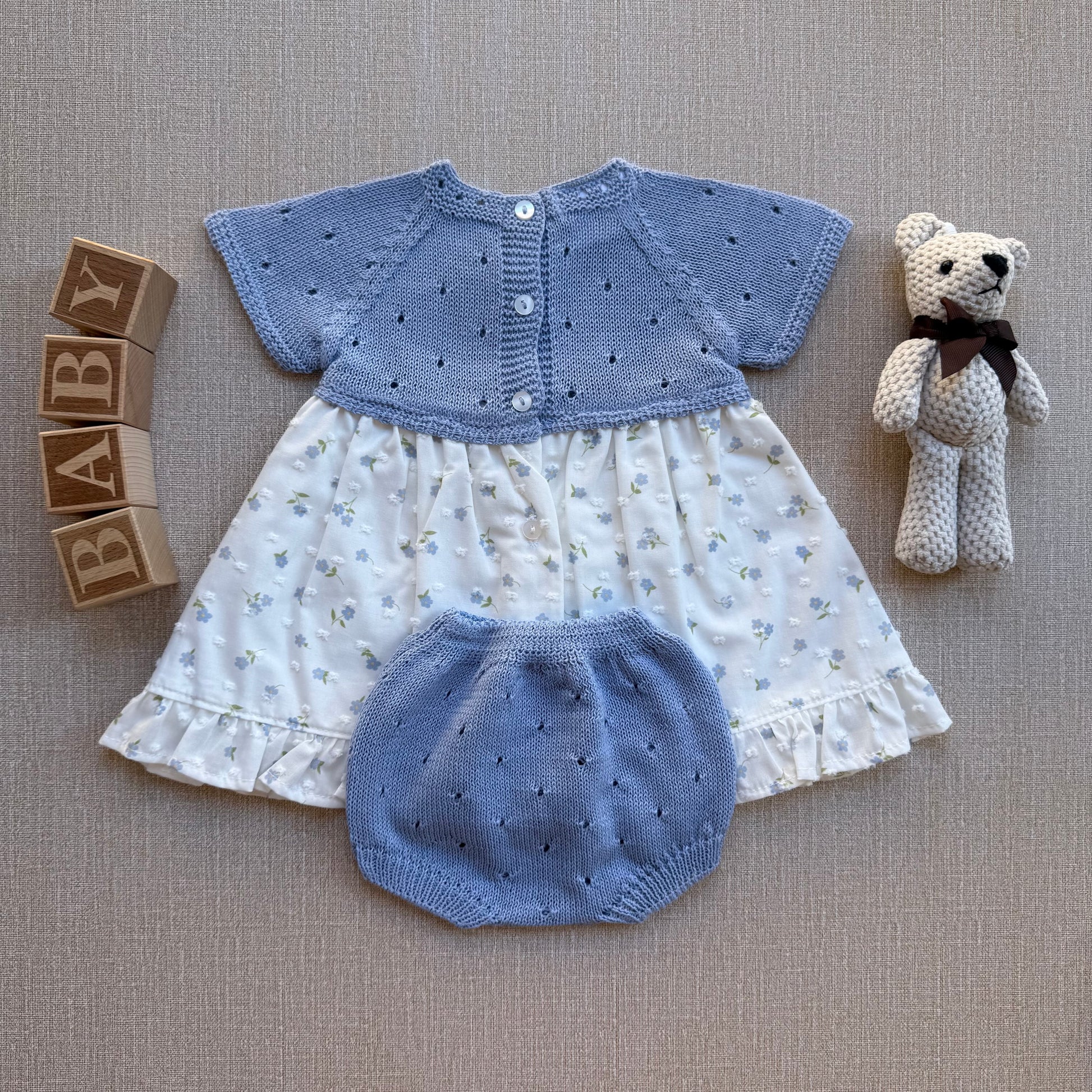 Descubre la combinación perfecta de elegancia y comodidad para tu bebé. Esta encantadora prenda presenta un cuerpo de punta y una falda ligera adornada con un delicado estampado lavanda, ideal para los días soleados de primavera y verano. Además, el pololo a juego, confeccionado en el mismo suave tejido de punto, completa el conjunto, asegurando libertad de movimiento y un ajuste cómodo para que tu pequeño disfrute al máximo.