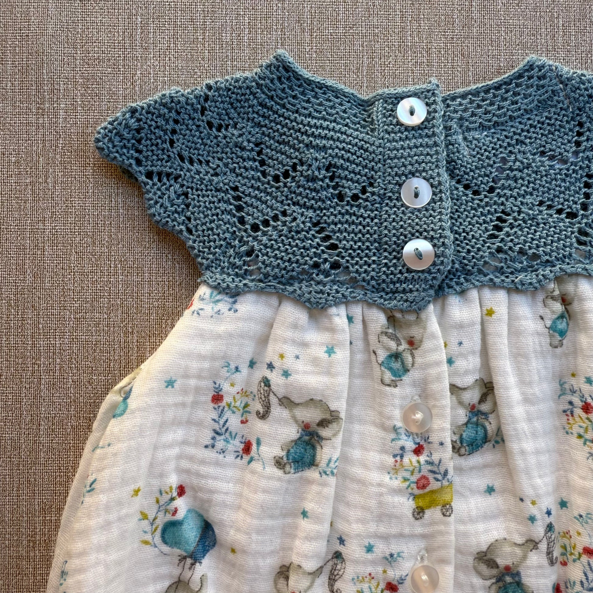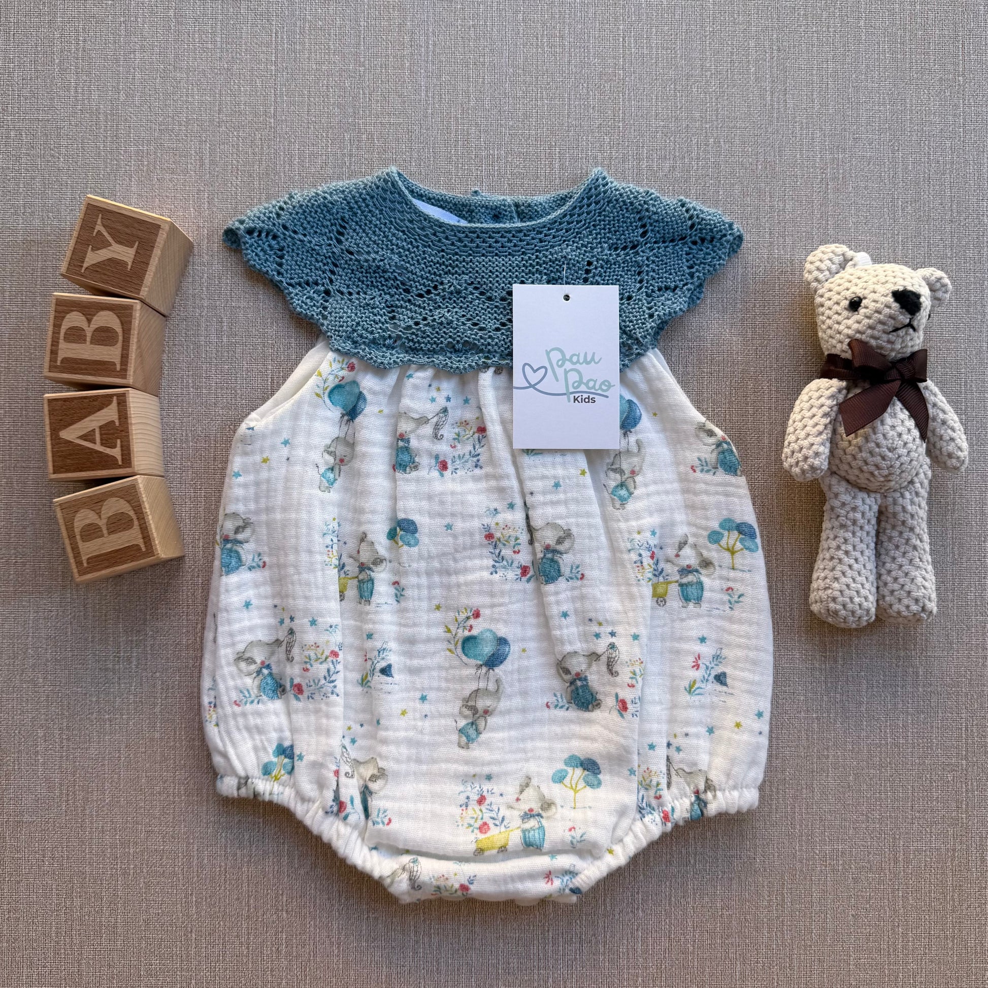 El Pelele es un básico esencial para los días cálidos, ideal para mantener a tu bebé cómodo y adorable en todo momento. Su cuerpo de punto en un elegante azul marino, junto con un encantador diseño calado, se complementa a la perfección con la parte inferior de algodón ligero, decorada con adorables estampados de animalitos y globos. ¡Tu pequeño lucirá encantador y fresco!