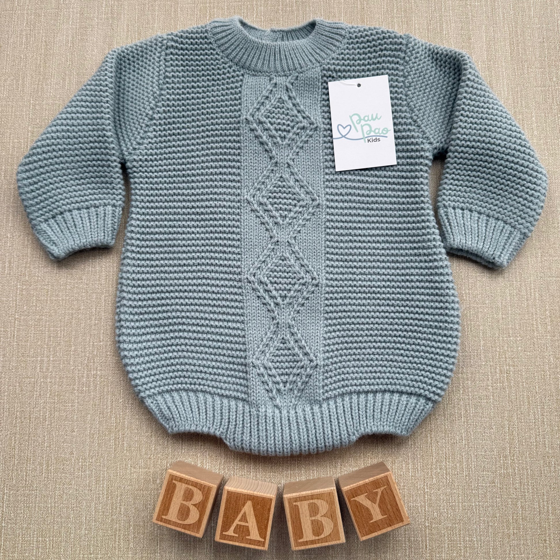 Este encantador pelele de punto está confeccionado con hilos suaves y cálidos, es una prenda ideal para abrigar, pensados para proteger y mimar a tu bebé durante el invierno sin perder comodidad.