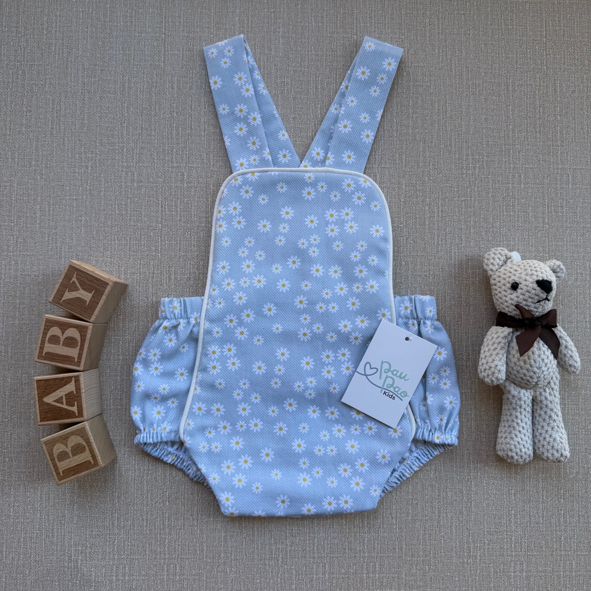Confeccionado en una tela con sutiles margaritas, este peto transmite dulzura y frescura. Su acabado con ribete en contraste añade un toque especial de elegancia, convirtiéndolo en una opción versátil para el día a día o momentos especiales.